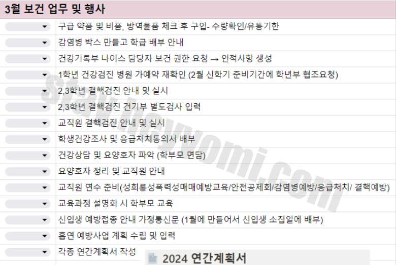 구글 공유 시트를 활용 한 연간 월별 보건 업무 정리와 노션을 활용 제가 정리해 놓은 업무별 해야 할 일에 대해 정리해 봤습니다.