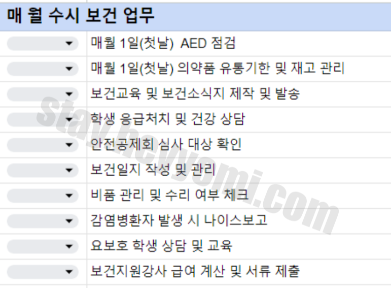 ▼아래 구글 공유시트는 배테랑 선생님들 보다는 신규 보건선생님들께 도움이 되지 않을까 싶은 마음에 공유해 봅니다.